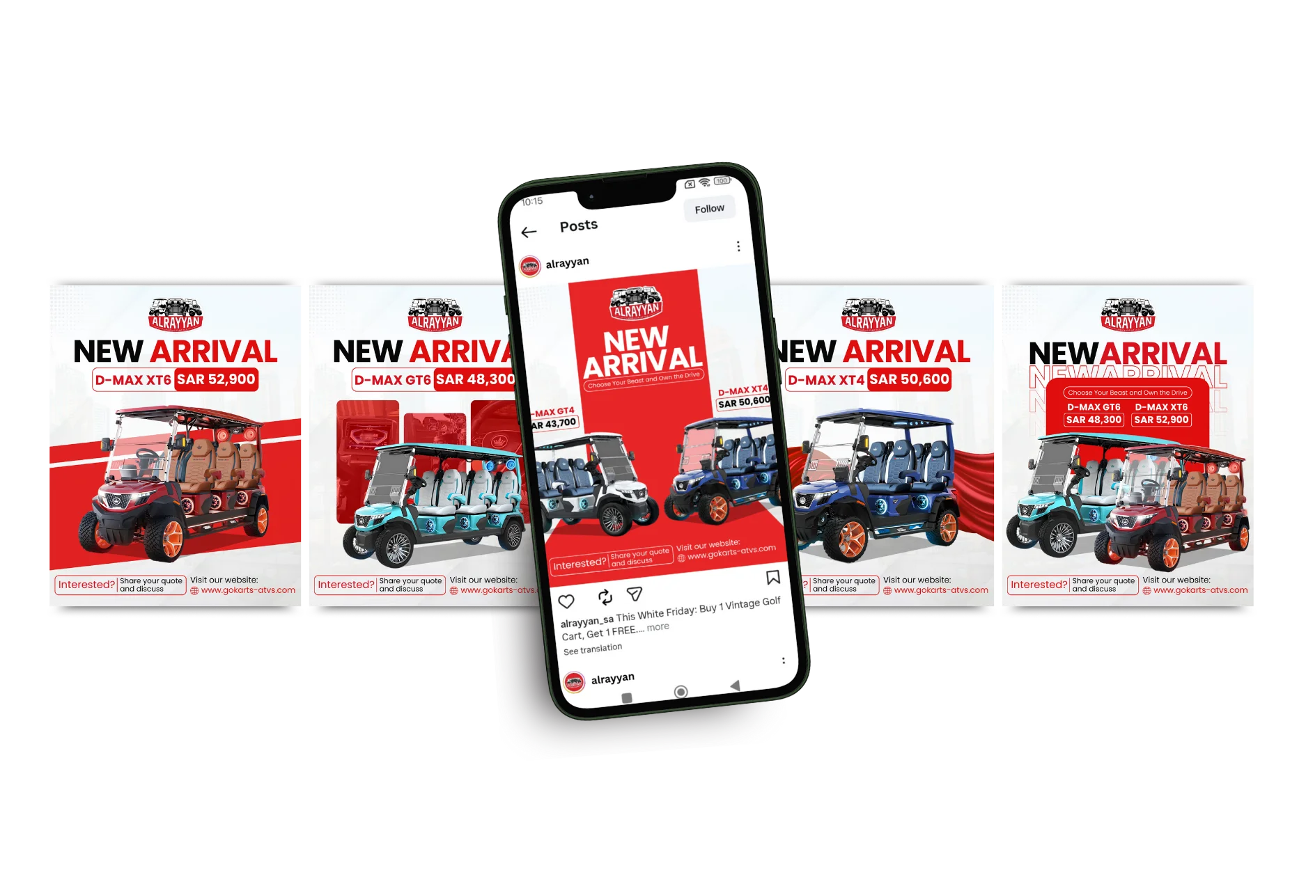 AlRayyan is a well-established Saudi Arabian company founded in 1974, recognized as the first and largest supplier of golf carts, luxury electric carts, utility carts, and UTVs in the region. With more than four decades of industry expertise, AlRayyan has built a strong reputation for quality, reliability, and innovation. The objective of this project was to translate that legacy and market leadership into visually compelling social media content that resonates with modern digital audiences while maintaining the brand’s premium and professional identity.