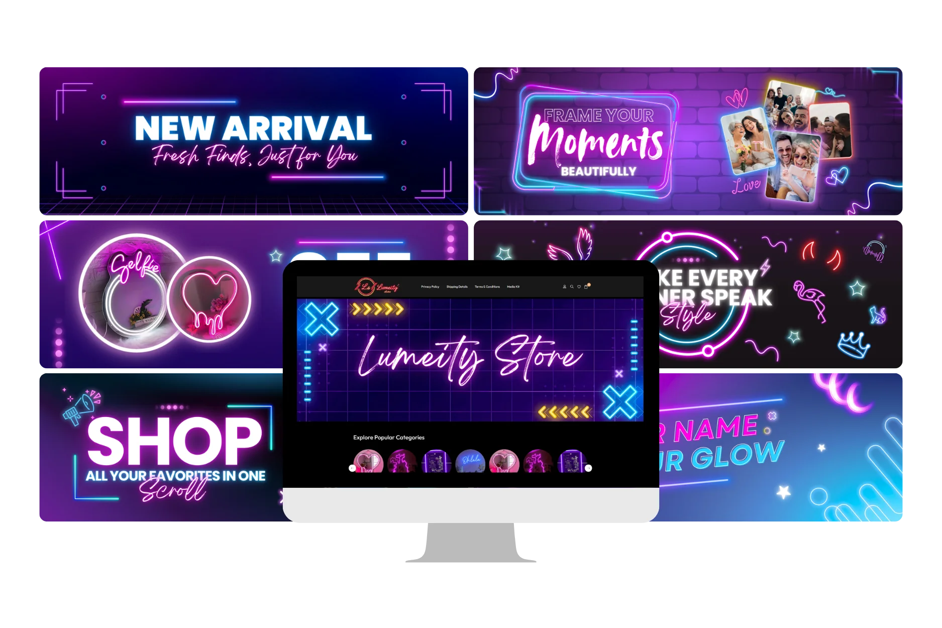 Lumeity is an eCommerce brand focused on offering modern, lifestyle-oriented products through a clean and visually driven online shopping experience. With a strong emphasis on aesthetics and product presentation, the website required impactful banner designs that could immediately capture user attention and communicate value. The purpose of this project was to design visually appealing website banners that enhance the overall shopping experience while supporting product discovery and promotional campaigns.